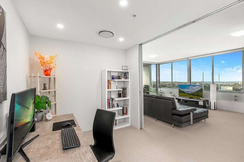 This modern two bedroom plus study penthouse apartment enjoys unrestricted panoramic district
