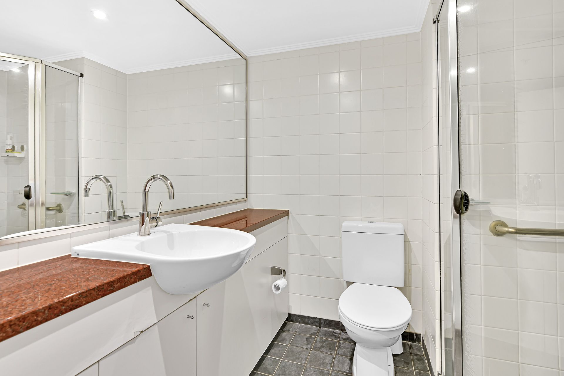 - Fully tiled bathroom with integrated internal laundry